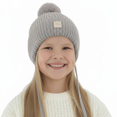 Dievčenská zimná čiapka šedá 100% extra jemná merino vlnená s podšívkou z vlnené Hakkari