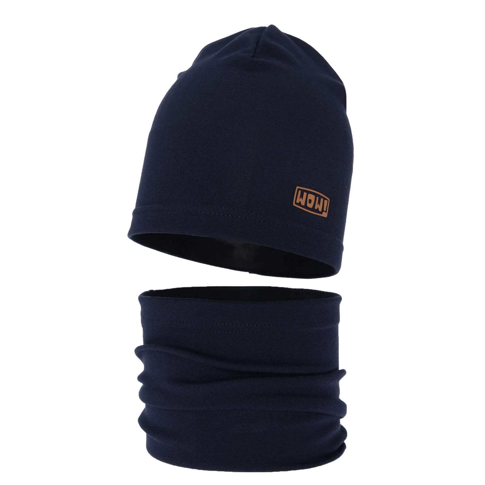 Komplet podzimní/jarní chlapecký: čepice a tunel tmavě modrý Frizer