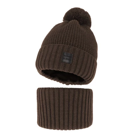 Komplet zimný chlapčenský: čiapka a tunel hnědý Conan