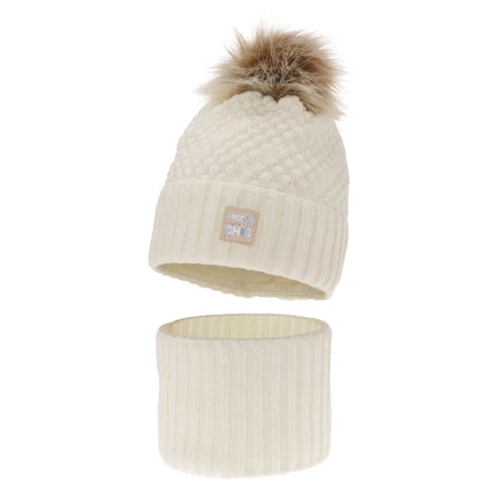 Komplet zimní dívčí: čepice a tunel krémový bambulí Alena