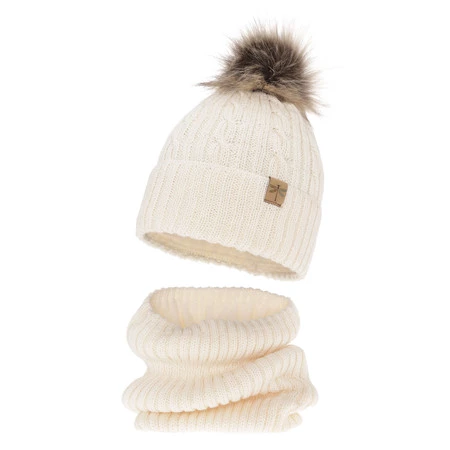 Komplet zimní dívčí: čepice a tunel krémový merino vlna Aprilia