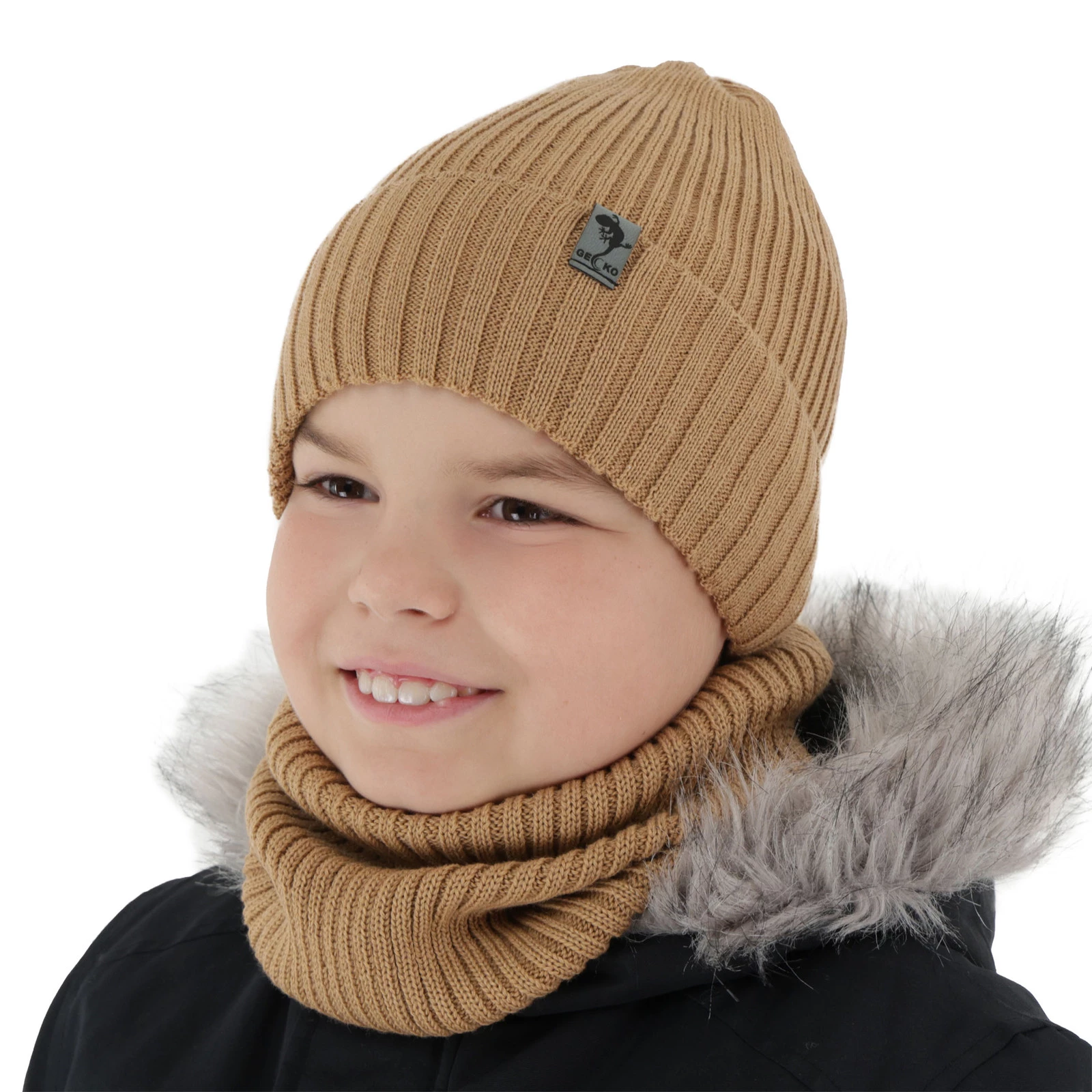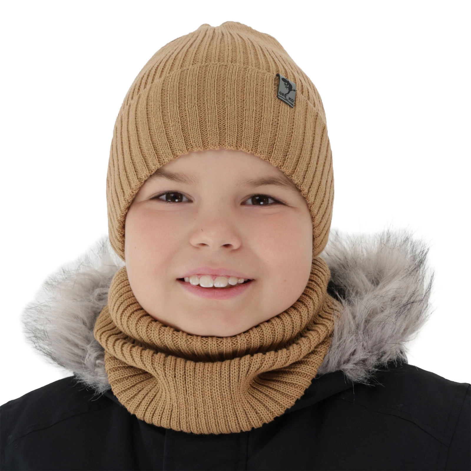 Komplet zimný chlapčenský: čiapka a šál camel merino vlna Gecko