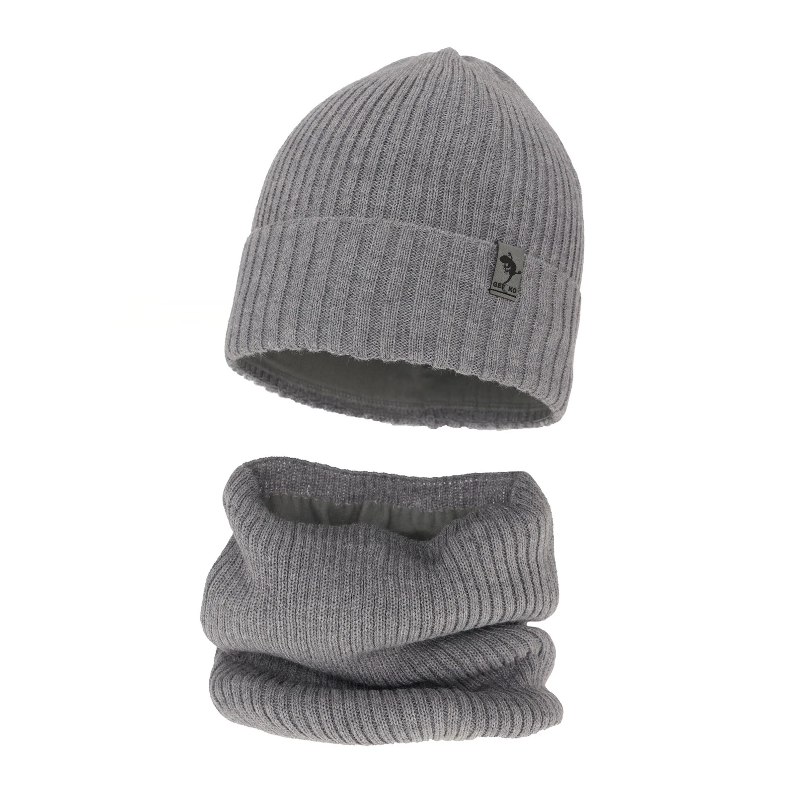 Komplet zimný chlapčenský: čiapka a šál šedý merino vlna Gecko
