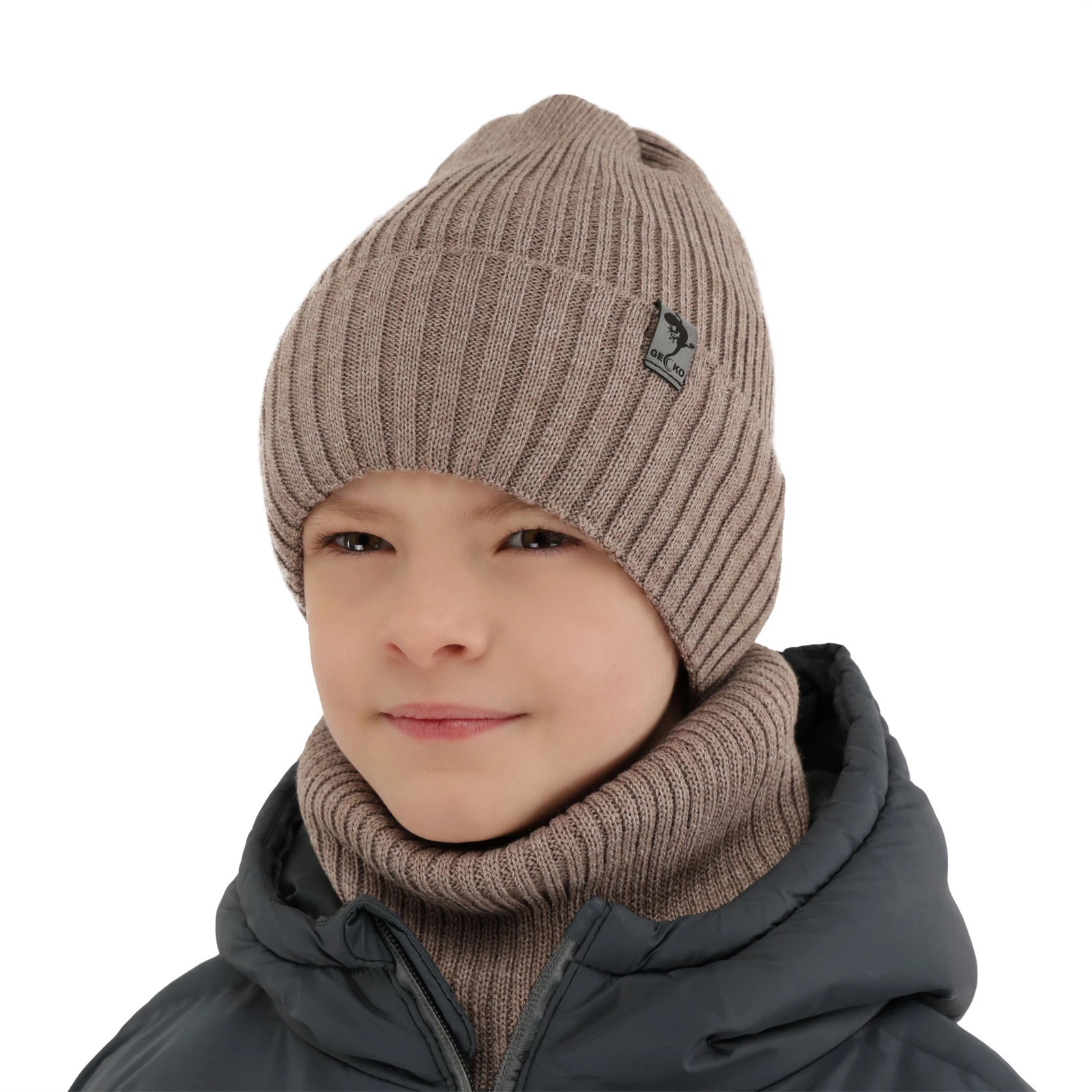 Komplet zimný chlapčenský: čiapka a šál hnědý merino vlna Gecko