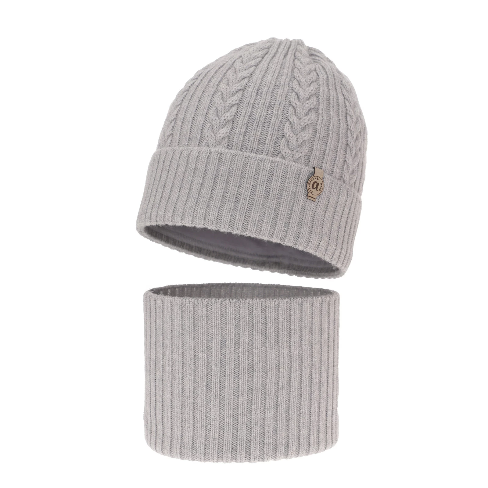 Komplet zimnej dívčí: čepice a tunel šedý 100% extra fine merino vlna Jenny