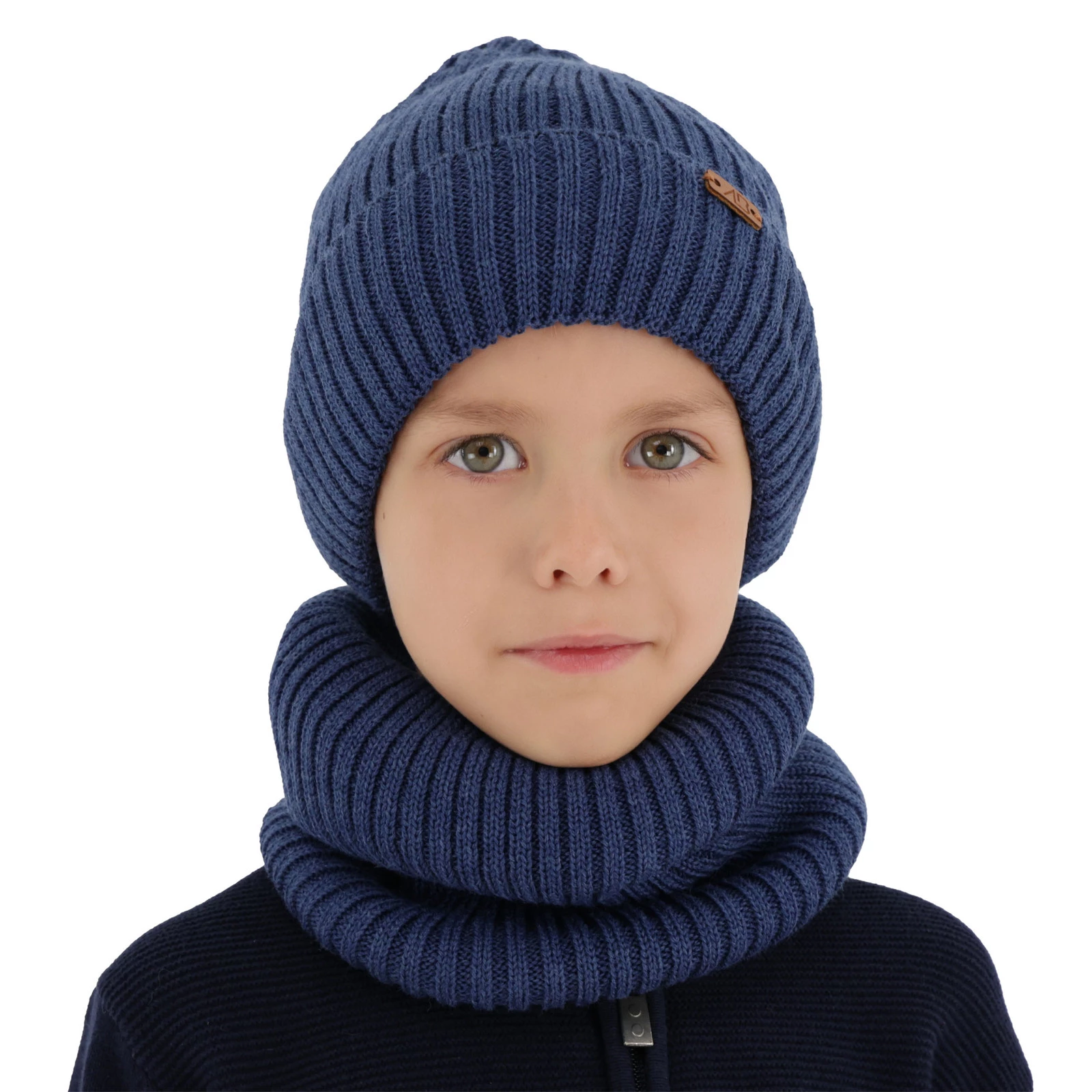 Komplet zimný chlapčenský: čiapka a šál tmavě modrý merino vlna Palermo