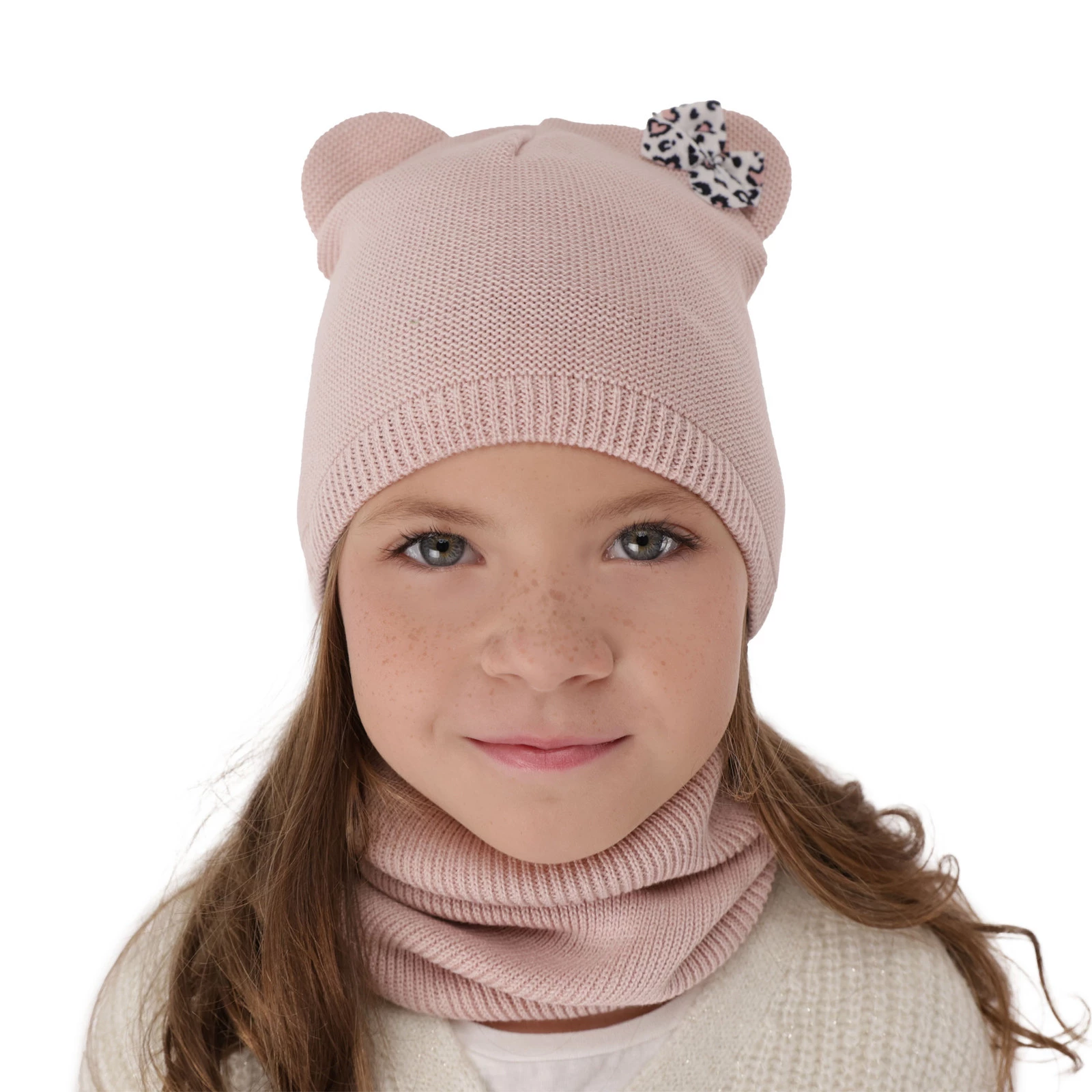Komplet podzimní/jarní dívčí: čepice a tunel, s bavlnou, růžový Nicolette