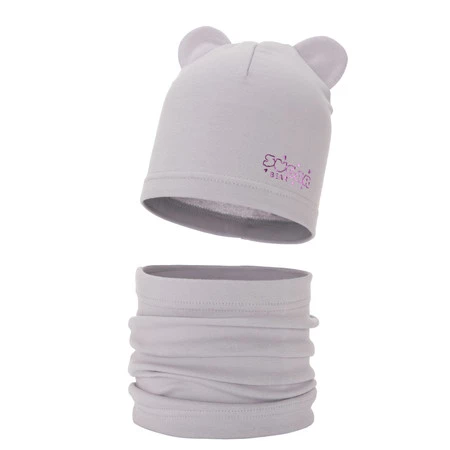 Komplet podzimní/jarní dívčí bavlněná: čepice a tunel šedý Cyntia