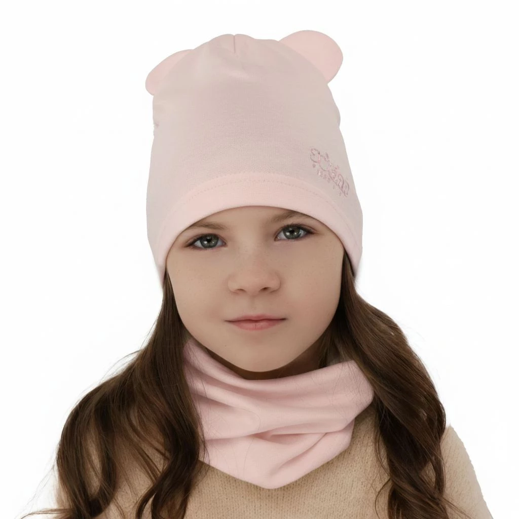 Komplet podzimní/jarní dívčí bavlněná: čepice a tunel růžový Cyntia