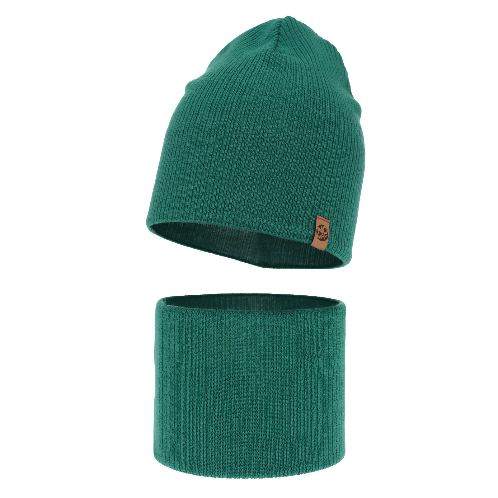 Komplet podzimní/jarní chlapecký: čepice a tunel zelený 100% extrafine merino vlna Richi