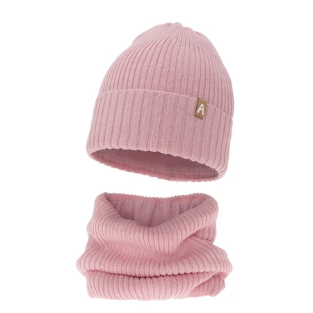 Komplet zimnej dívčej: čiapka a tunel růžový merino vlna Peggy