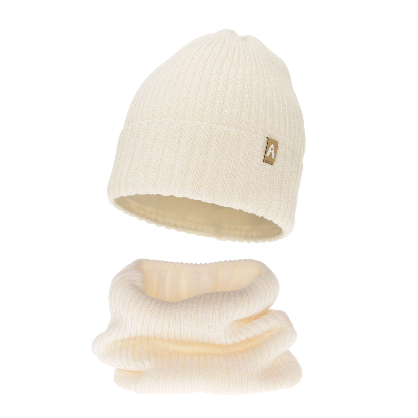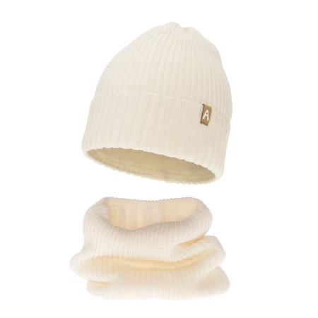 Komplet zimnej dívčej: čiapka a tunel krémový merino vlna Peggy