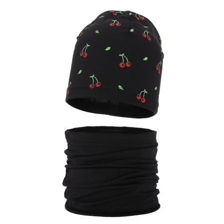 Komplet podzimní/jarní dívčí bavlněná: čepice a tunel černý Cerise