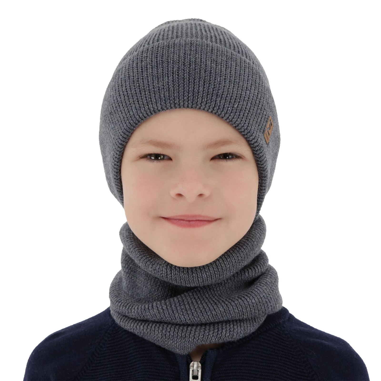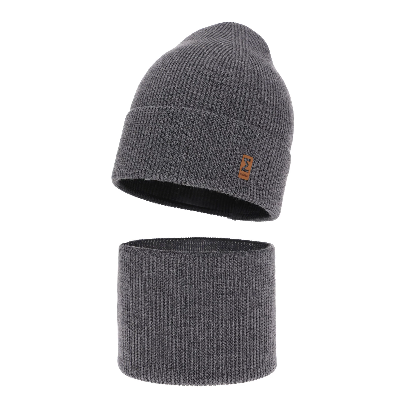 Komplet podzimní/jarní chlapecký: čepice a tunel šedý 100% extrafine merino vlna Bruce