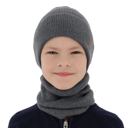 Komplet se vyznačuje moderním žebrovaným vzorem, který mu nejen dodává stylový vzhled, ale také zvyšuje pružnost materiálu. Díky tomu se čepice a tunel přizpůsobí hlavě a krku dítěte a zajistí dokonalý komfort. Zajímavá nášivka dodává celku osobitý charakter a způsobí, že vaše dítě bude mezi vrstevníky vynikat.
