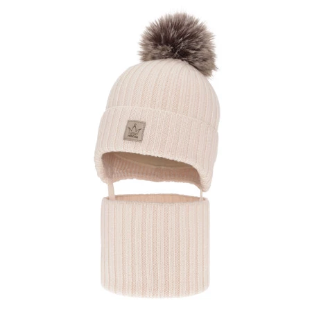 Dívčí charakter čepice zdůrazňuje roztomilá aplikace na manžetě a módní žebrovaný vzor, který dodává celku elegantní vzhled. Třešničkou na dortu je velký, nadýchaný pompon, který dodává šarm a zajistí, že vaše holčička vynikne mezi ostatními dětmi. Tunel dokonale doplňuje celek, obepíná krk a chrání jej před větrem a zimou.