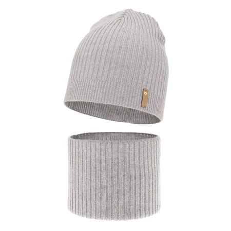 Komplet jesenný/jarný dievčenský čiapka a tunel šedý 100% extrafine merino vlna Chelsie