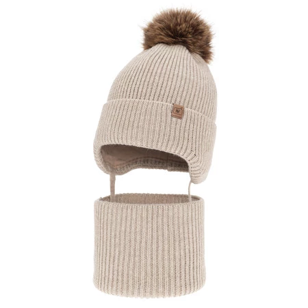 Kompletná zimná detská sada: čiapka a šál béžový s bambuľou Zico