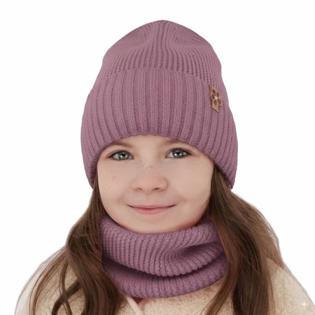 Komplet zimný dievčenský čiapka a tunel fialový 100% extrafine merino vlna Nelita