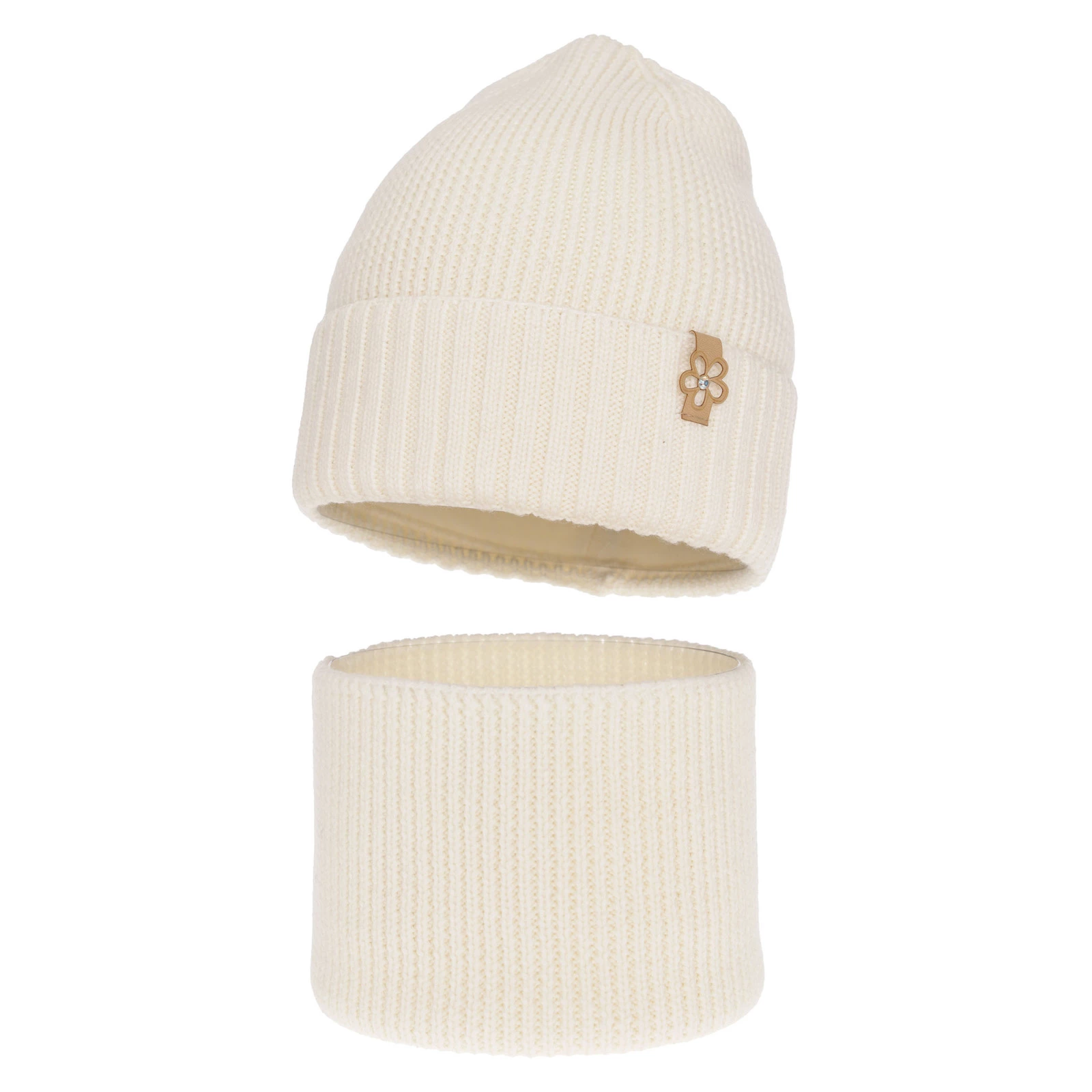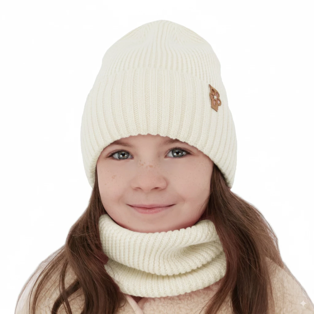 Komplet zimný dievčenský čiapka a tunel krémový 100% extrafine merino vlna Nelita