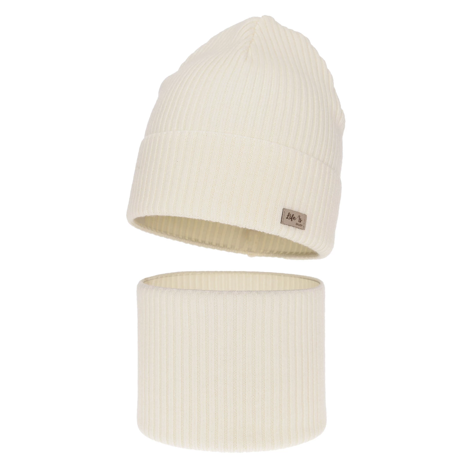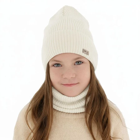 Komplet jesenný/jarný dievčenský čiapka a tunel krémový 100% extrafine merino vlna Itra