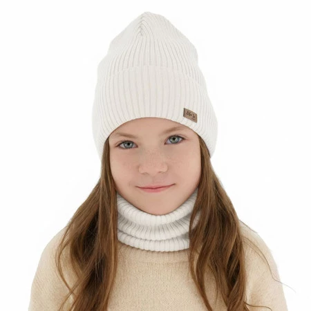 Komplet jesenný/jarný dievčenský čiapka a tunel bílý 100% extrafine merino vlna Itra