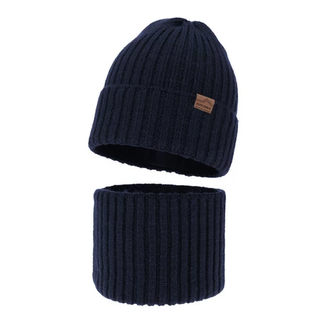 Komplet zimný chlapčenský: čiapka a tunel tmavě modrý merino vlna Karmin