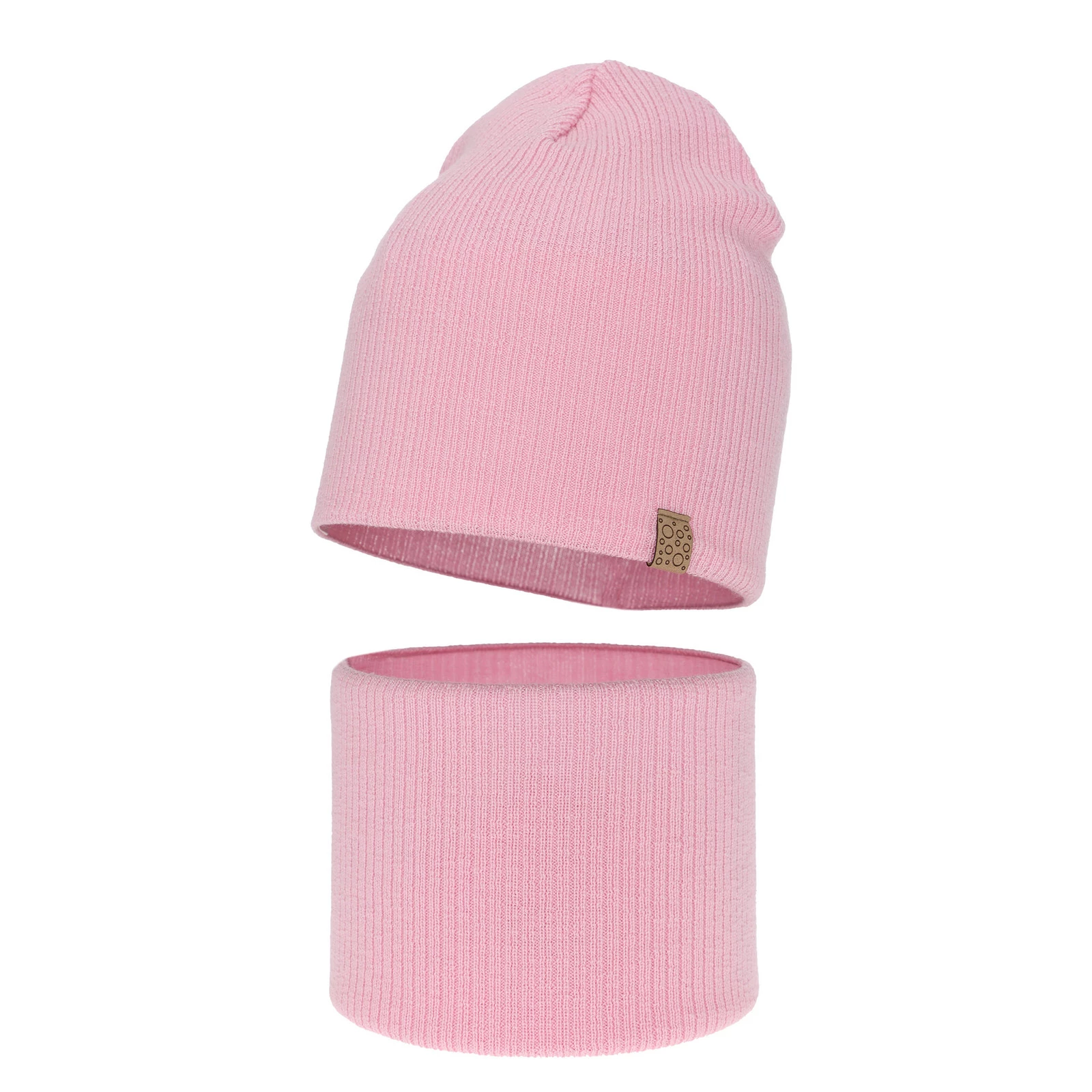 Komplet jesenný/jarný dievčenský čiapka a tunel růžový 100% extrafine merino vlna Ricona