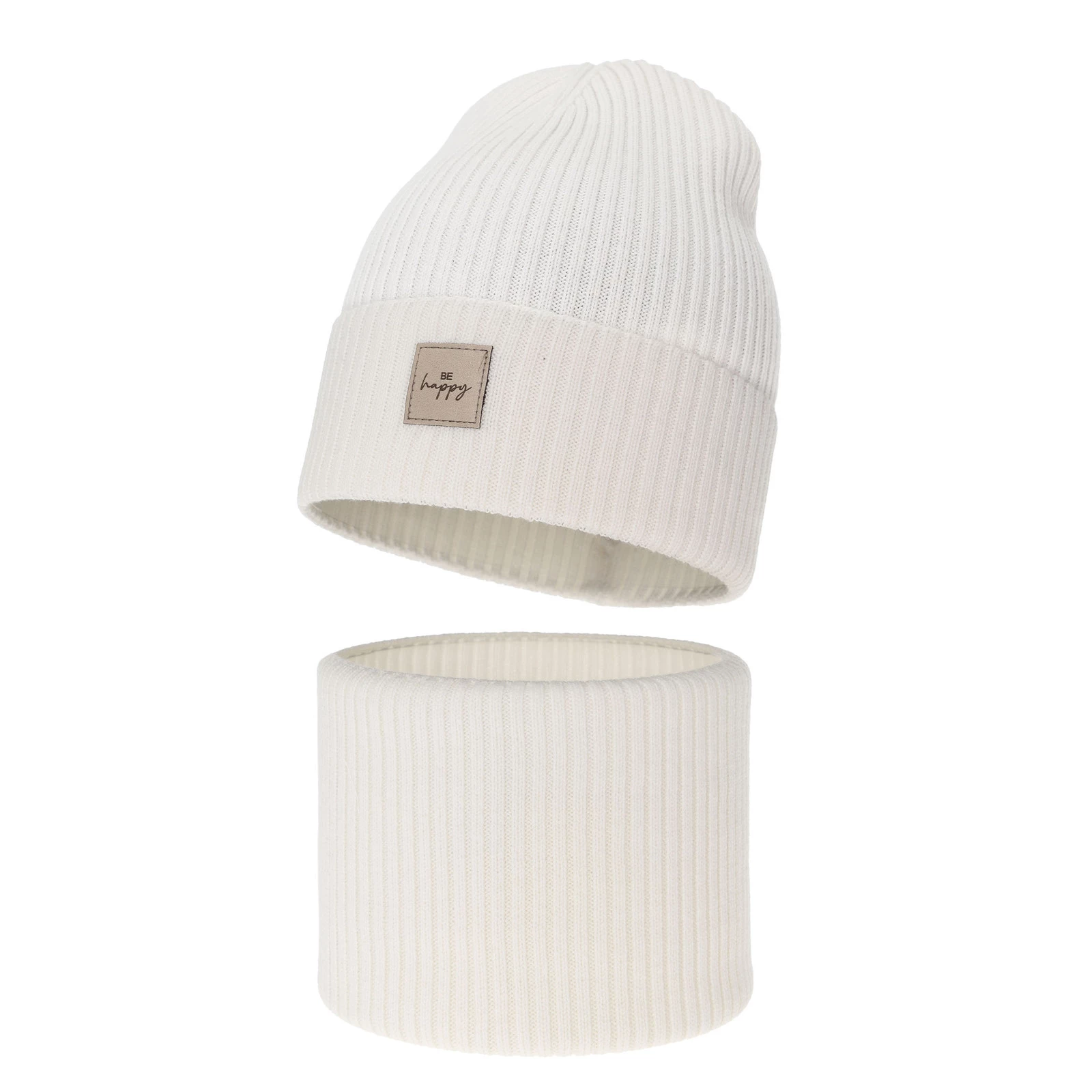 Komplet podzimní, jarní dívčí: čepice a tunel, bílý, 100% merino vlna, Vanita