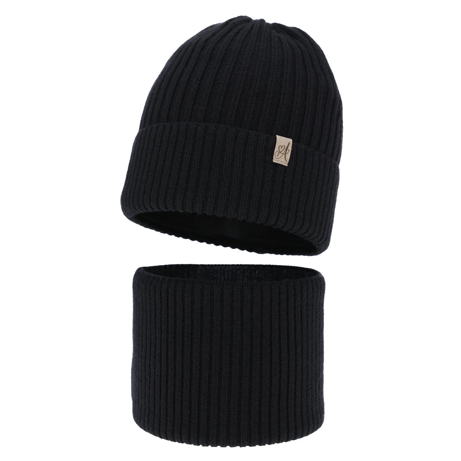 Komplet zimní dívčí: čepice a tunel, černý, 100% merino vlna, Patricia