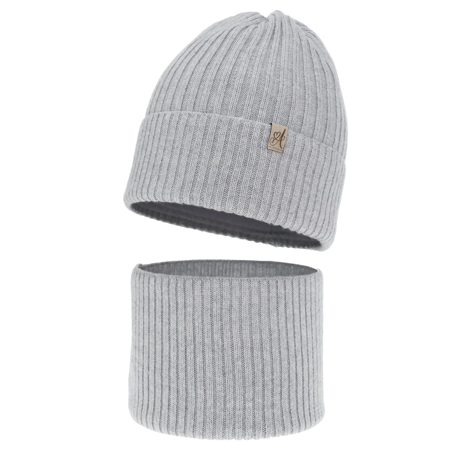 Komplet zimní dívčí: čepice a tunel, šedý, 100% merino vlna, Patricia