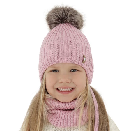 Komplet zimnej dívčí: čepice a tunel, růžový, merino vlna, Muanda