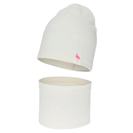Komplet podzimní, jarní dívčí bavlněná: čepice a tunel, krémový, Rumilla
