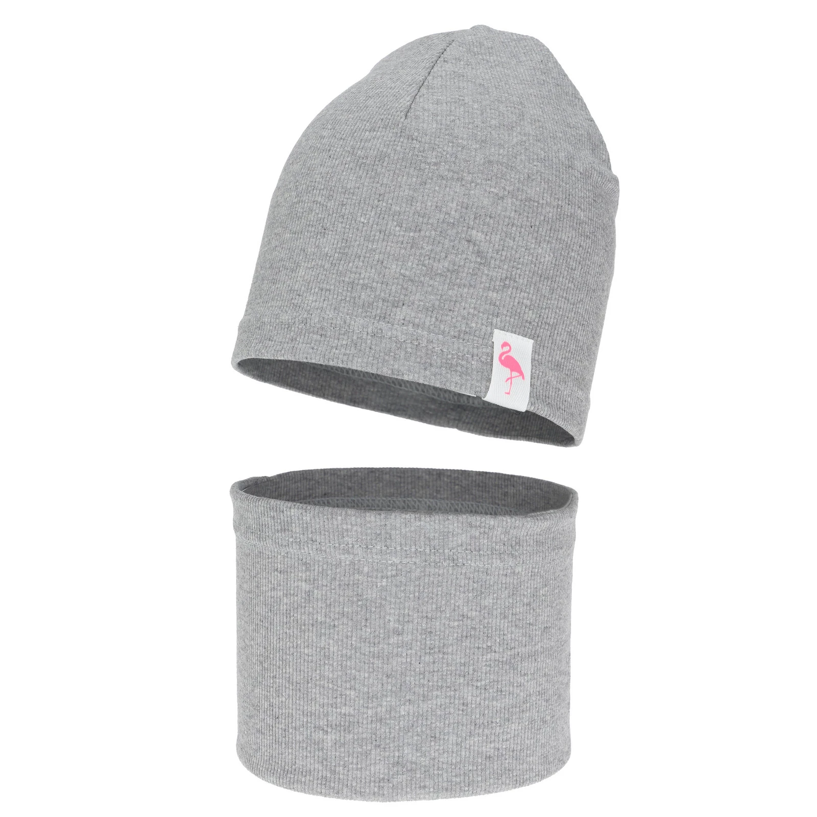 Komplet podzimní, jarní dívčí bavlněná: čepice a tunel, šedý, Rumilla