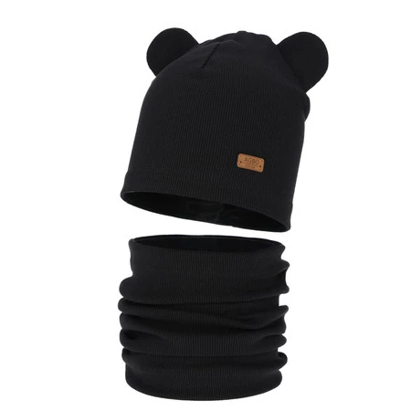 Komplet podzimní, jarní dívčí: čepice a tunel, bavlněný, černý Georgea