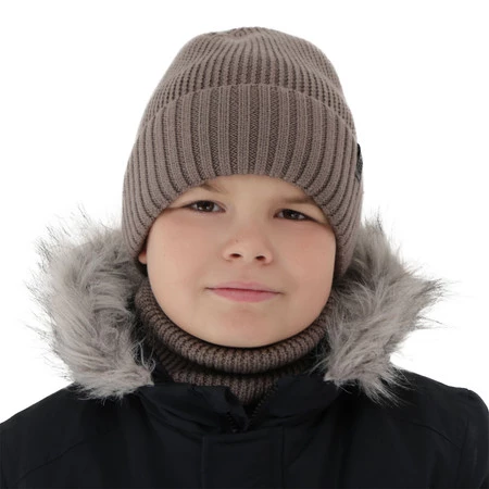 Čepice a tunel pro chlapce, zimní komplet, 100% merino vlněný, s merino vlněným podšitím, hnědý Harbin