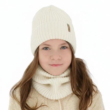Čepice a tunel podšité polarem dívčí zimní komplet, krémový, s merino vlnou, Odette