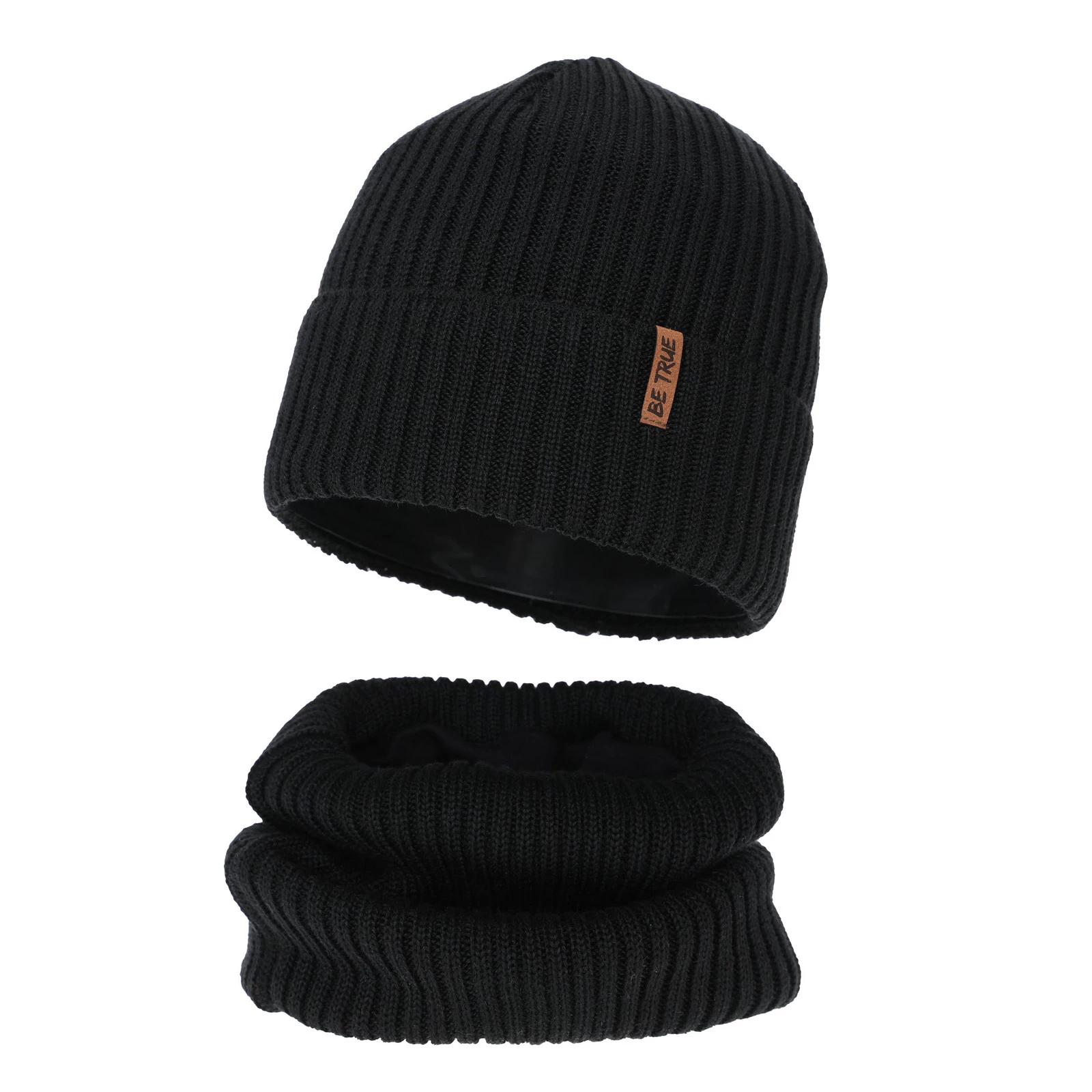 Čepice a tunel podšitý fleesem chlapecký zimní komplet, černý, s merino vlnou, Colton