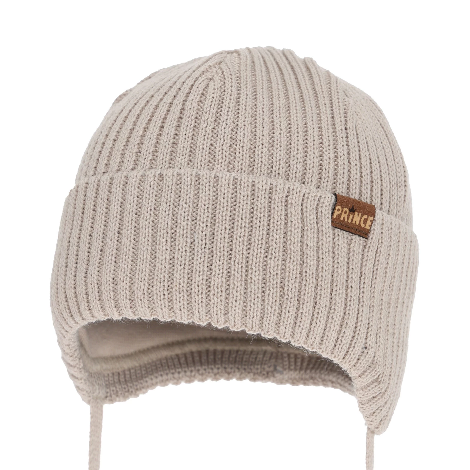 Chlapecká zimní čepice, zavazovací, s merino vlnou, béžová, Puser
