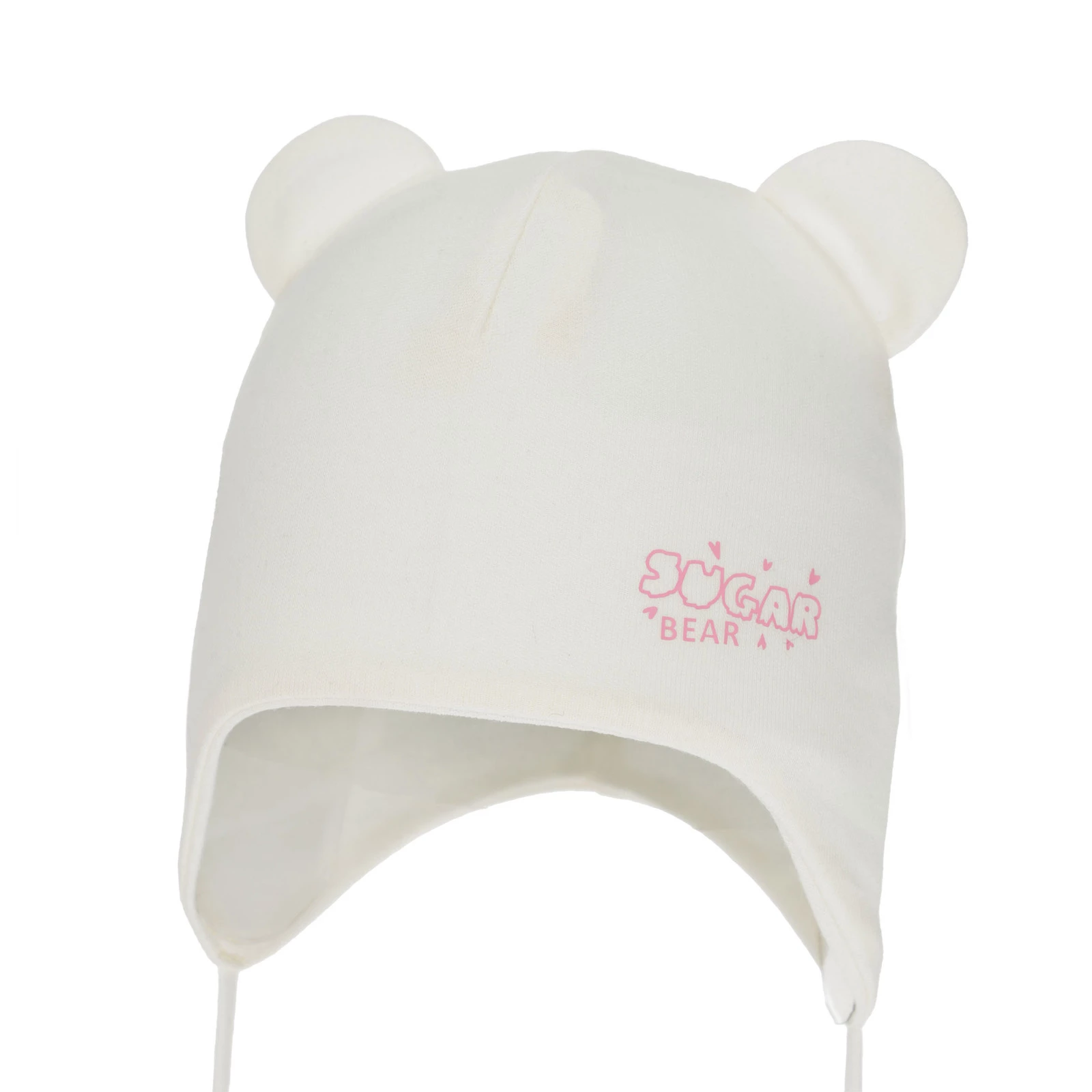 Dívčí podzimní/jarní čepice, krémová, bavlněná, zavazovací, Kelda