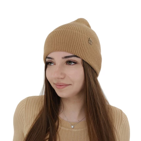 Dámská podzimní, zimní čepice, camel, s merino vlnou s kašmírem, Alineta