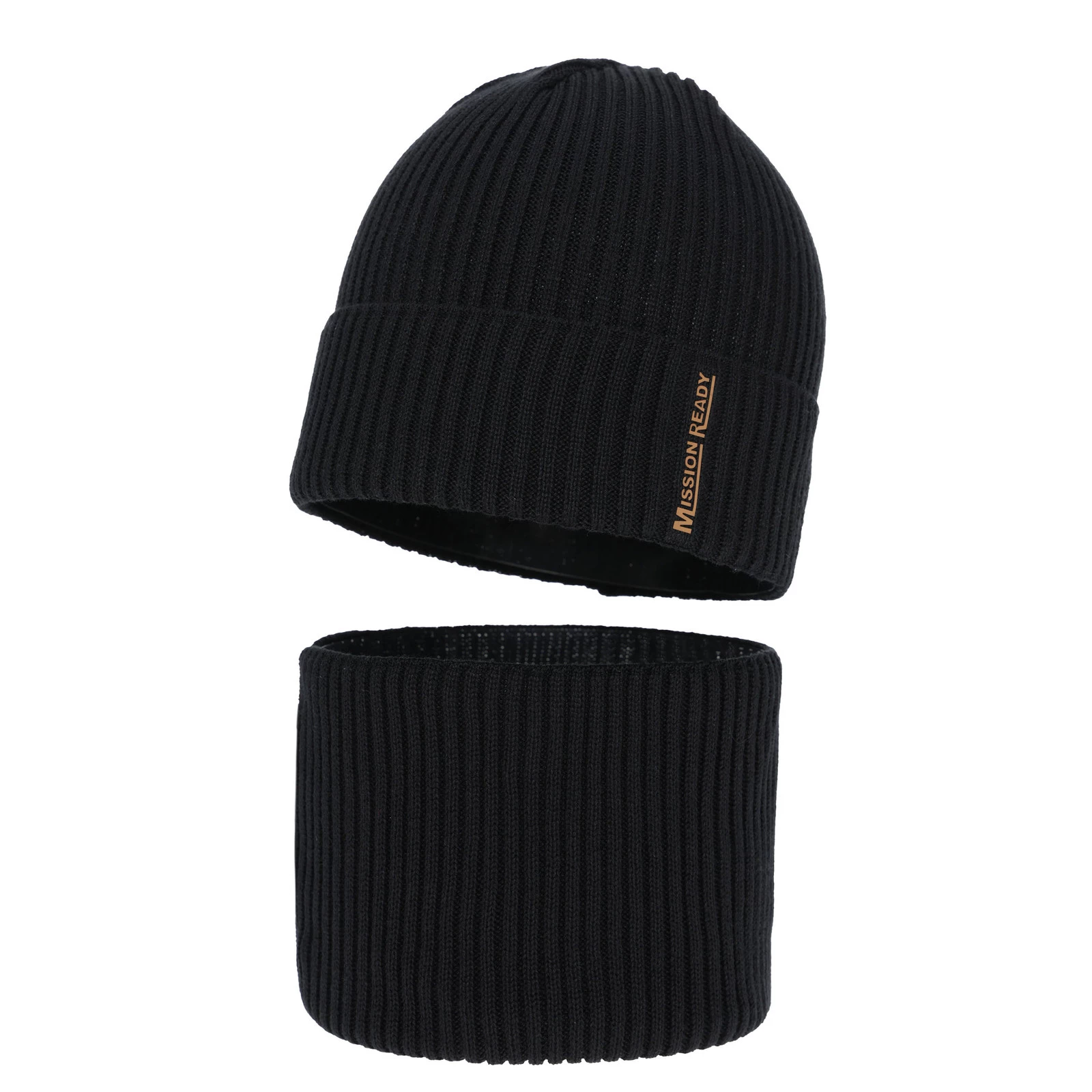 Chlapecká čepice a nákrčník podzimní, jarní set, , s bavlnou, černý, Norwin