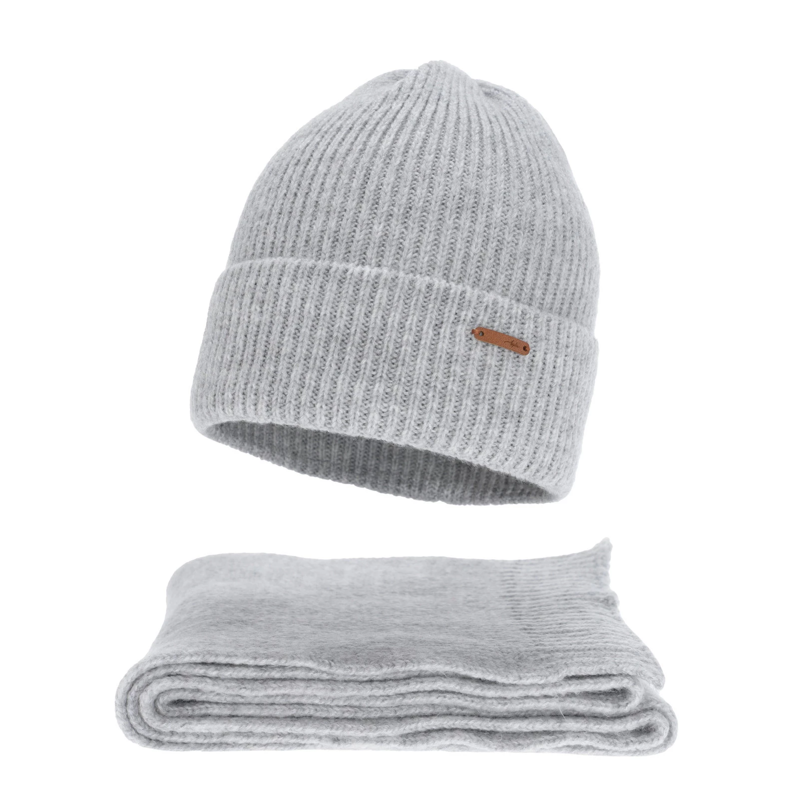 Komplet zimní dámský: čepice a šála, šedý, s merino vlnou, Seala