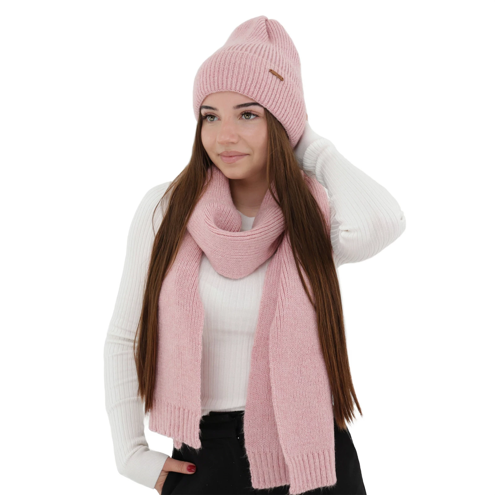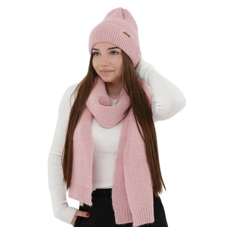 Komplet zimní dámský: čepice a šála, růžový, s merino vlnou, Seala