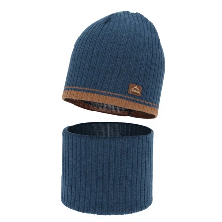 Komplet podzimní, jarní chlapecký: čepice a tunel, s bavlnou, modrý, Eirik