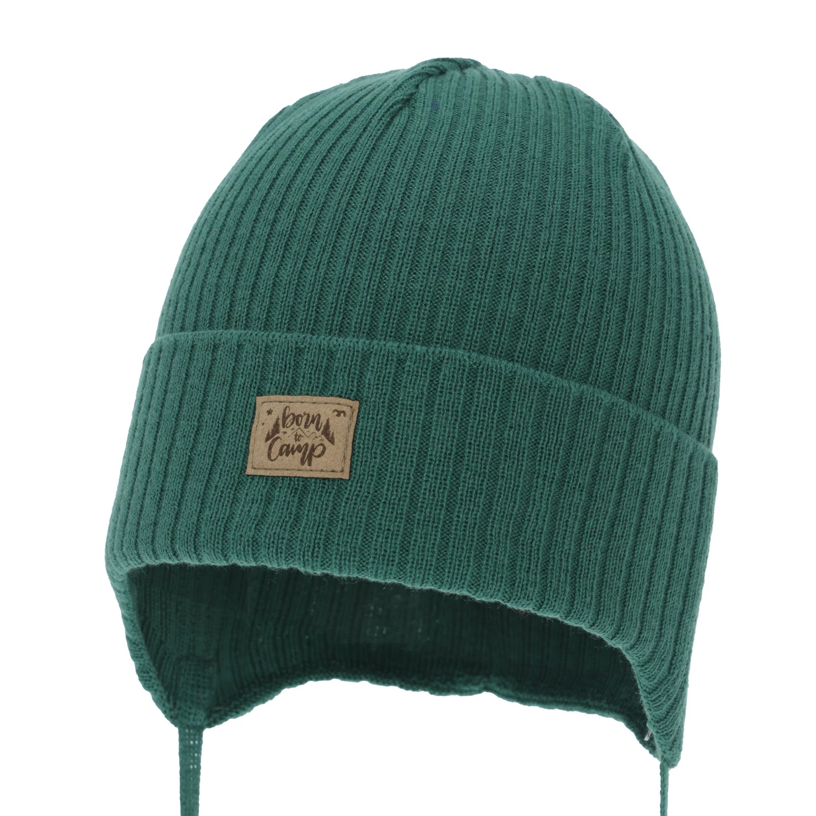 Chlapecká podzimní/jarní čepice, smaragdová, zavazovací, s bavlnou, Fenris