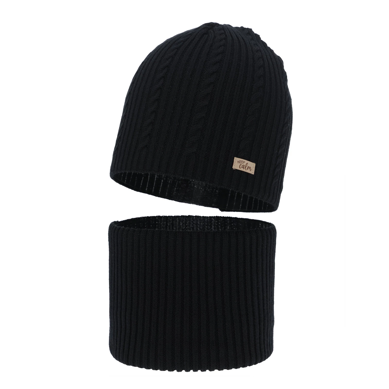 Komplet podzimní, jarní dívčí: čepice a tunel, s bavlnou, černý, Ordesa