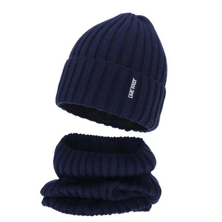 Komplet zimní chlapecký: čepice a tunel, modrý, s merino vlnou, podšitý fleece, Banasko