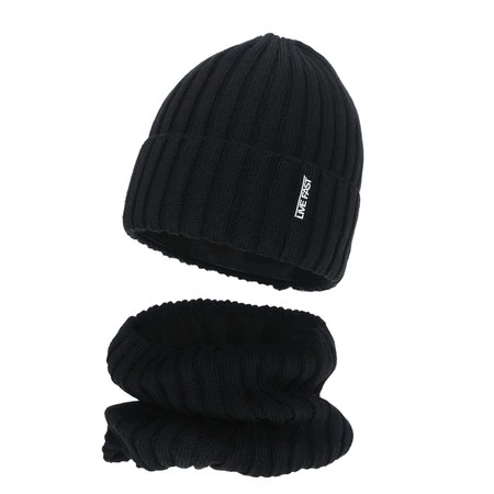 Komplet zimní chlapecký: čepice a tunel, černý, s merino vlnou, podšitý fleece, Banasko