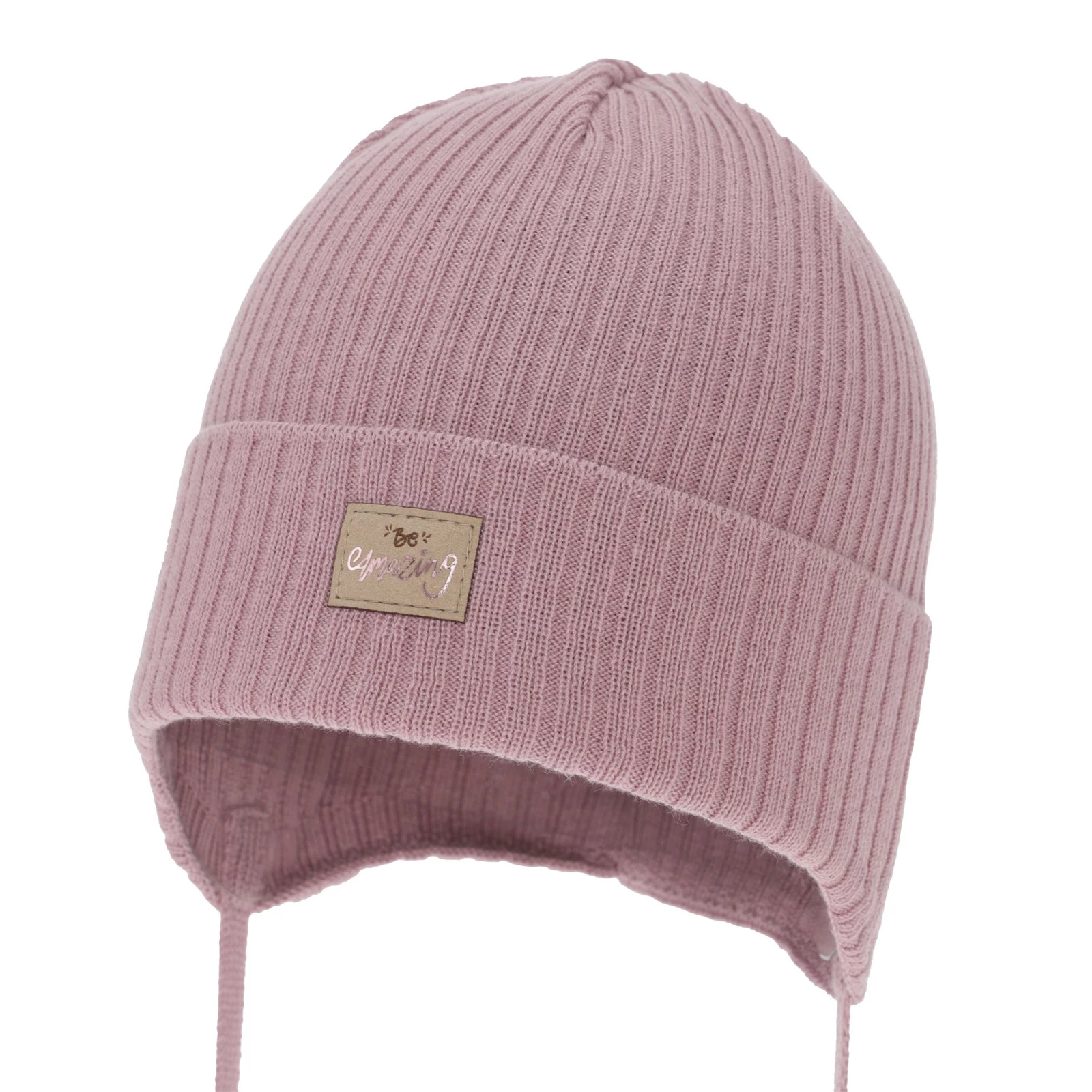 Dívčí podzimní/jarní čepice, růžová, zavazovací, s bavlnou, Tindra